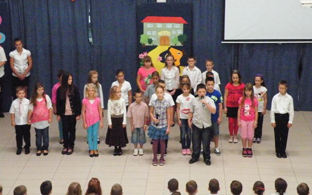 Szenyériné Szabolcska Julianna igazgatónő beszámolt az iskola életét érintő változásokról. Az évnyitón vendégünk volt Dombóvár polgármestere, Szabó Loránd, aki az E.ON ajándékát adta át minden elsős kisdiáknak: egy tornazsákot, melyben baseball sapka, focilabda, ugrókötél és póló volt.