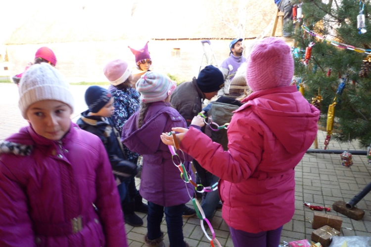 Fenyődíszítés a kaposszekcsői Közösségi Háznál