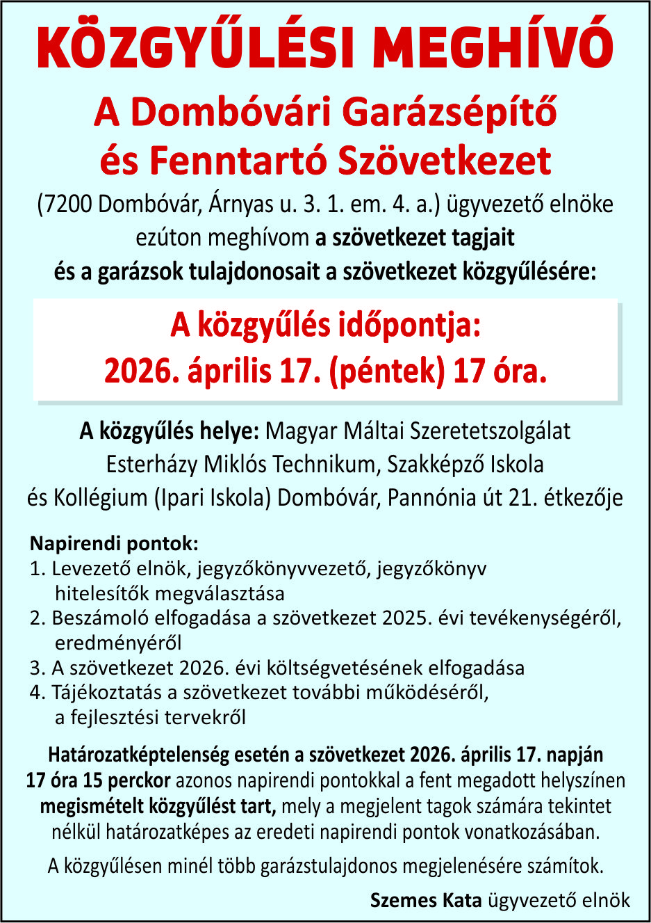 A Dombóvári Garázsépítő és Fenntartó Szövetkezet közgyűlése